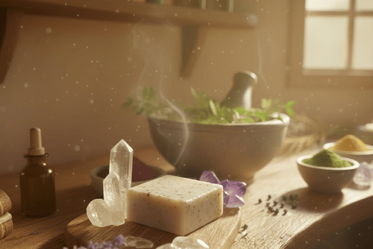 The Crystal: Every bar has a real, unique crystal which is a physical anchor for your energy that remains long after the soap has returned to the earth.