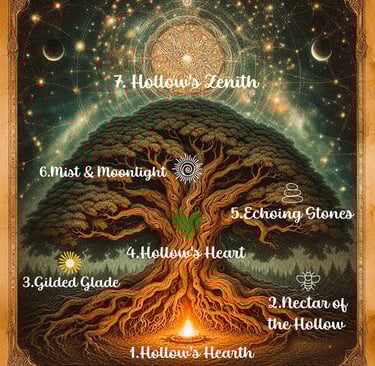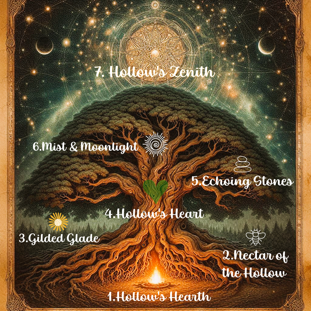 The beauty of the Ritual Path lies in its versatility. Perhaps today you feel ungrounded, floating in the anxiety of the future. You might reach for the Root chakra landmark Alignment Bar we call Hollow's Hearth, pressing your feet to the earth and bathing in the grounding frequency of 396 Hz.