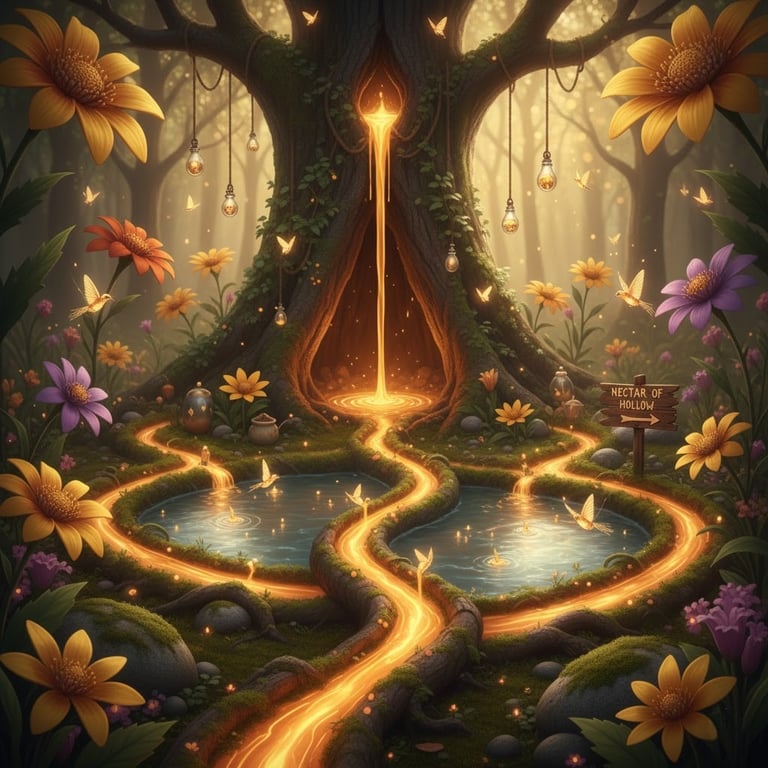 The Story: Life is meant to be tasted. Nectar of the Hollow is for the moments of sweetness, when the Wanderer stops to marvel at the gold of the sun and the ripple of the stream. It is the vibration of pure, unfiltered joy.