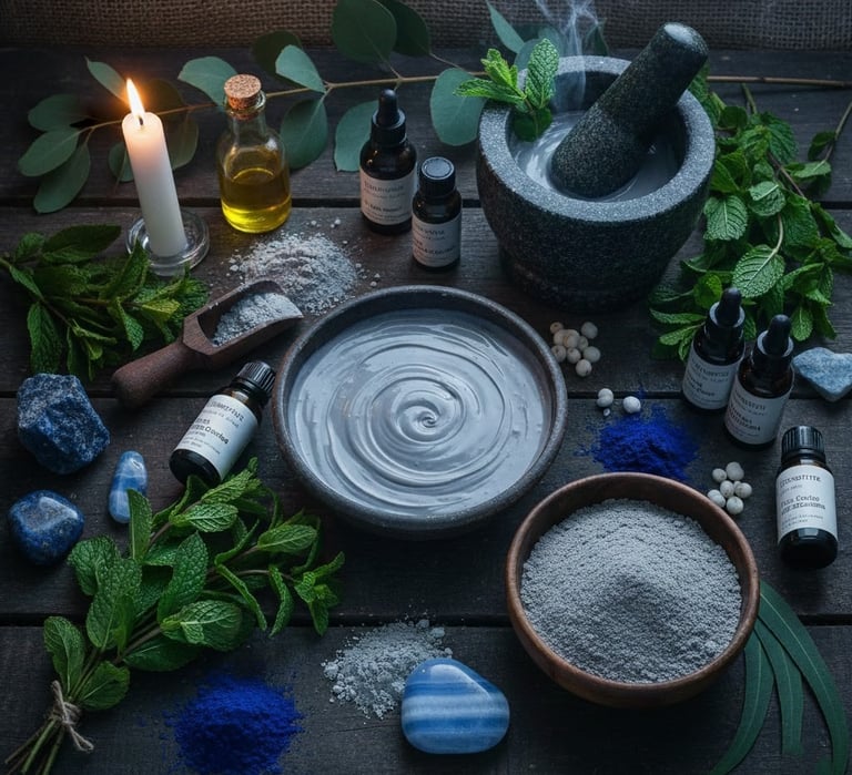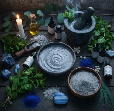 Skin Benefits: Blue Clay and Indigo Powder soothe and balance the skin, while Kaolin provides a silken, gentle slip. This combination is exceptionally good at calming "heated" skin, providing a refreshing, mineral-rich cleanse.